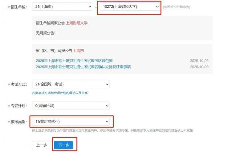 注意:* 定向就业单位一般就是自己目前就业的单位。报考期间就业单位发生变化不影响考生报考。* 招生单位、考试方式等关键信息不允许修改。