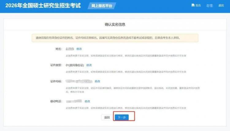 ■如果需要更改信息,请退出系统后重新从研招网首页登录报名系统修改,正式网报结束后任何信息均不能修改。