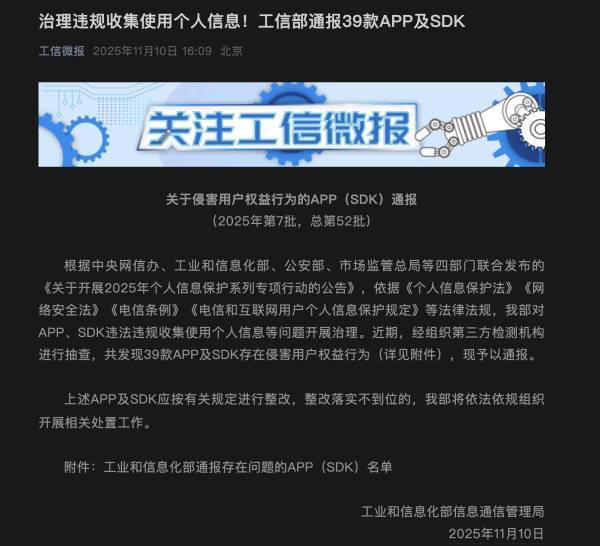 工信部在此次通报中要求,所有存在问题的APP及SDK必须按有关规定进行整改,整改落实不到位的,将依法依规组织开展相关处置工作。