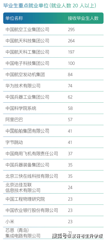 就业数据同样亮眼,毕业生就业去向落实率连续多年保持在 95% 以上,2024 届本科深造率达 77.04%。就业分布呈现 三足鼎立 格局:约三分之一投身航空航天领域,三分之一进入 IT 信息行业,其余则分布在公务员、科研院所及金融、新能源等领域。中国航空工业集团、中国航天科技集团、华为等企业均为其核心就业单位。