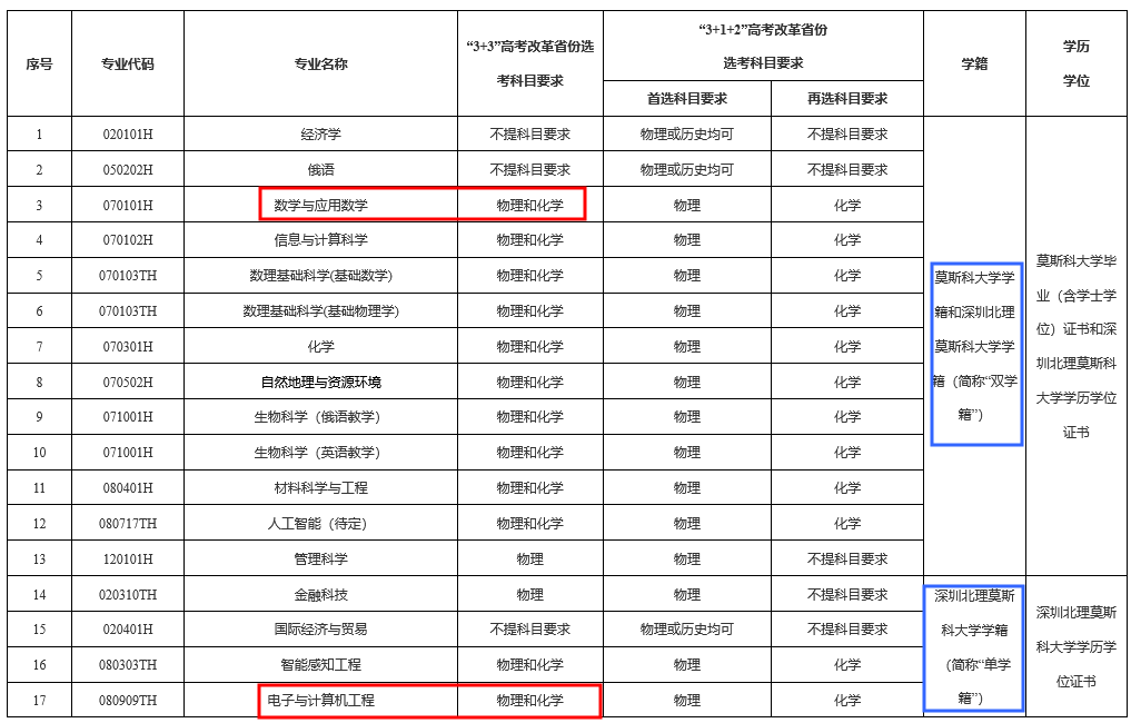 或综合评价试点高校相应批次(以省份招生发布的文件为准)填报深圳北理莫斯科大学。填报专业志愿时,学校测试科目不同的专业不可同时填报。(五)录取